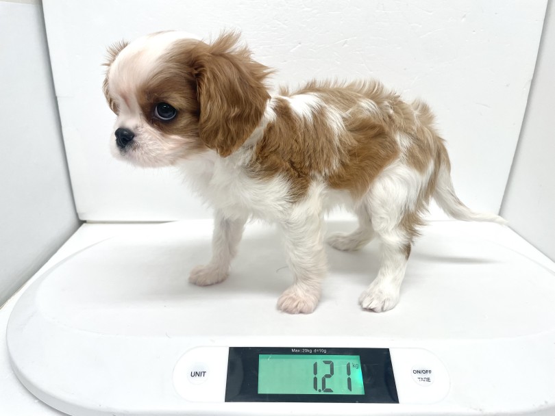 埼玉県川口市にあるペットショップ【マルワン東川口店】に大きな瞳とカールのかかった耳が特徴的な『キャバリア・キングチャールズ・スパニエル』の女の子が仲間入り!