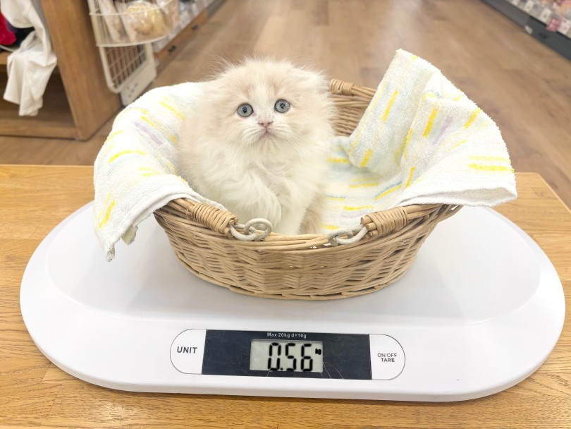 12月17日現在の体重は560gでした!成猫時の体重は3.0kg〜6.0kgを予想しております。