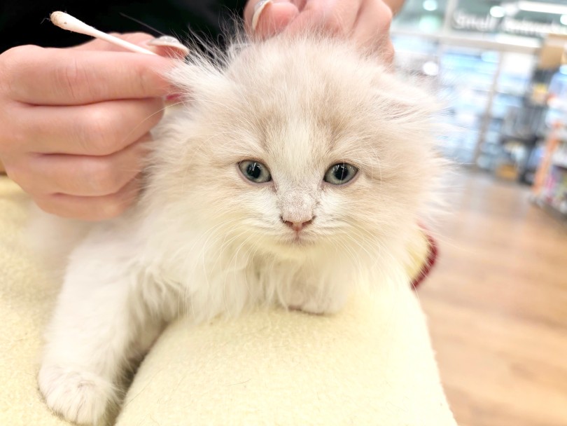 綿棒が入ると少し手で搔こうとしますが払い除けることはなくとってもいい子!