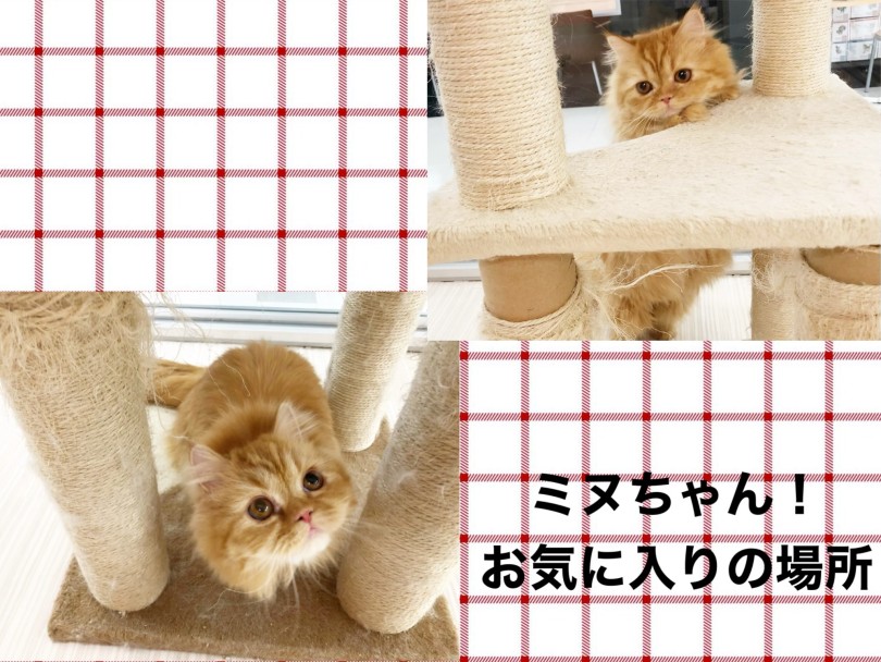 まずはお部屋にある三段階になっているキャットタワーの下。