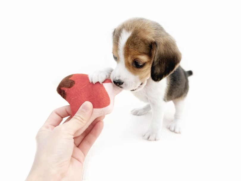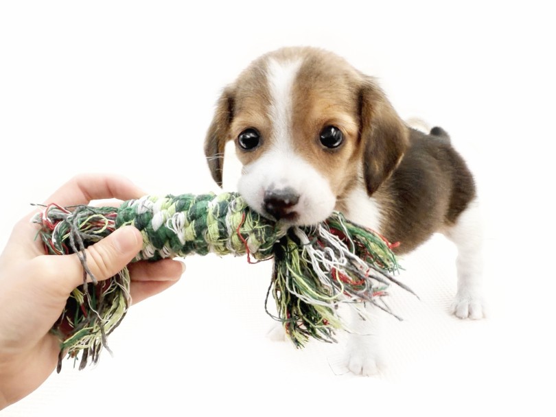 おもちゃ遊びの楽しさを知ったビーグルちゃん♪引っ張り合いっこしたり、おもちゃを投げたらピョンピョン飛び跳ねながら取りに行ってくれたりと、色々な遊び方で楽しんでくれます!