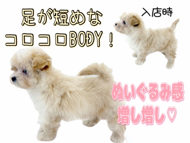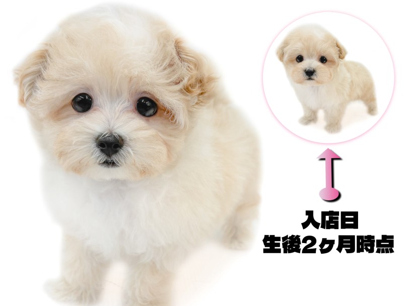 入店から1ヶ月。小さく幼いマルプーくんが、少しだけお兄ちゃんらしい表情に♪