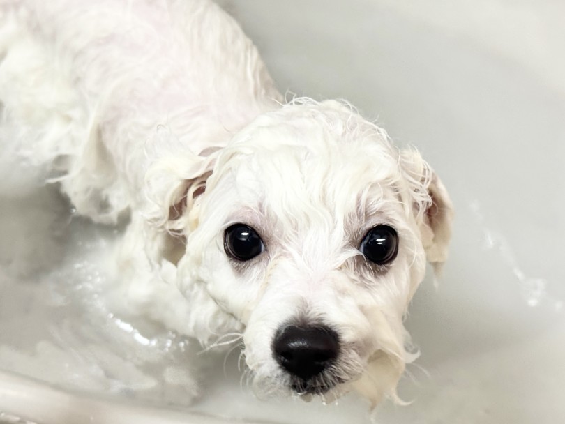 ボクの被毛は伸びてくるからトリミングサロンでカットが必要になるけれど、いまのうちからシャンプーやお手入れのトレーニングもこなしているからお家でもシャンプーできちゃうさっ♡