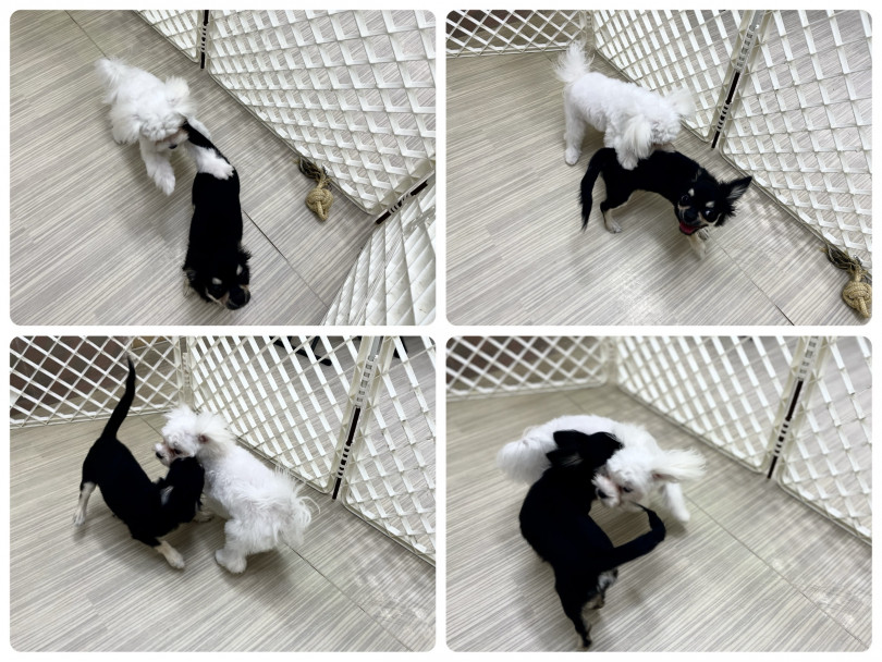 同じ月齢のチワワちゃんとは、サイズもほとんど一緒なため特に仲良しです♪