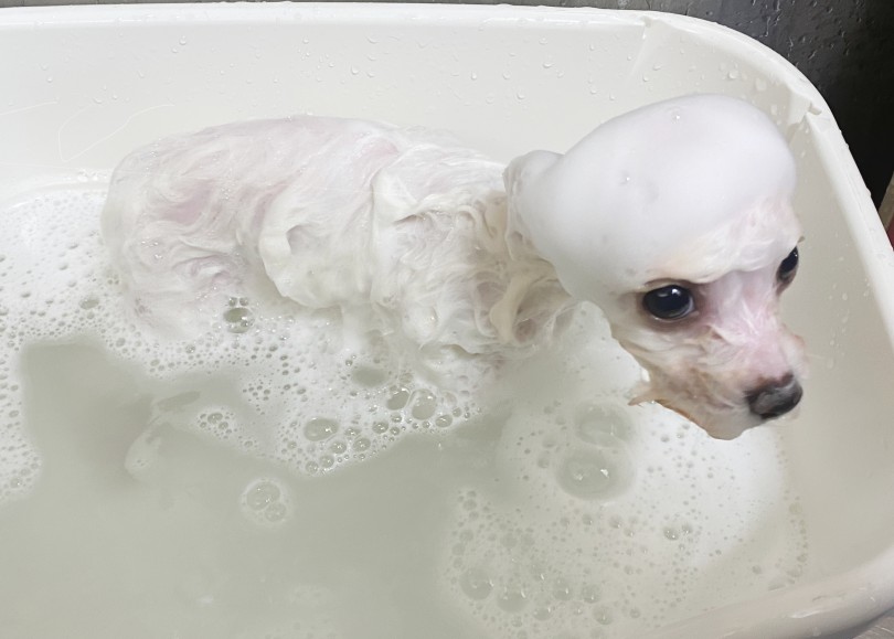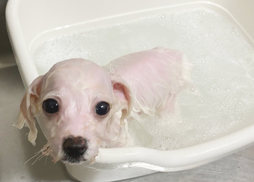 初めてのシャンプーで最初はびっくりしちゃったけど、だんだんリラックスしてきたの。