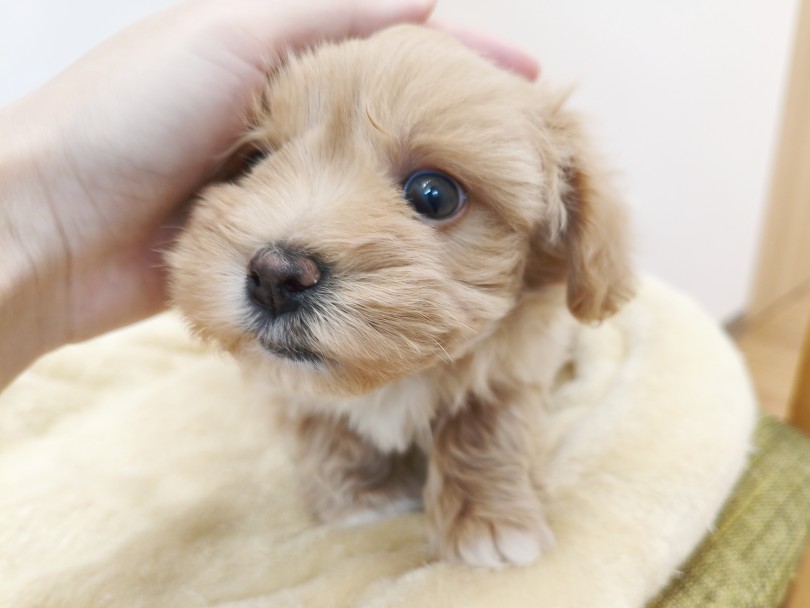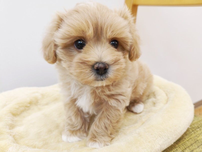 パパのマルチーズ譲りの柔らかくサラフワな被毛に、ママのトイプードル譲りのアプリコットカラーがなんとも可愛らしい♡