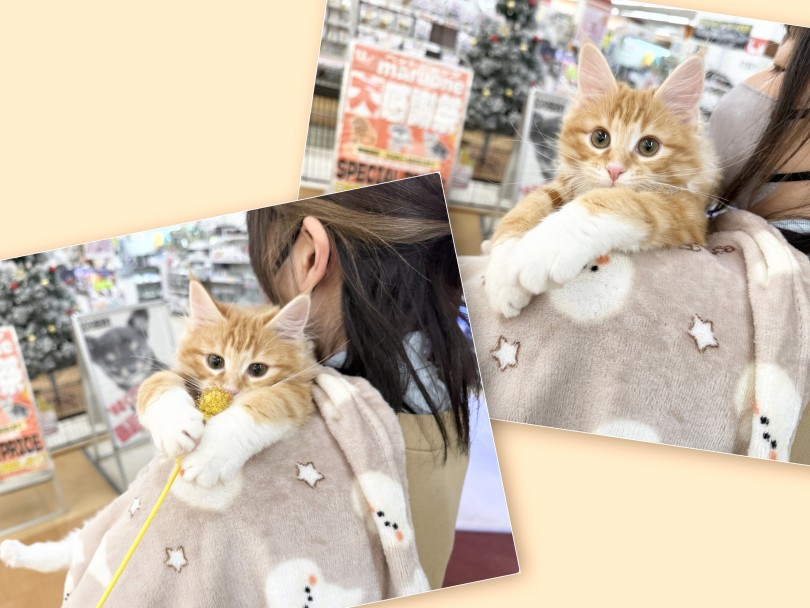 最近は運動量もグッと増え、遊びモードになるととても俊敏な動きを見せてくれます♪入店時より猫じゃらしへの反応は抜群だったメインクーンちゃんでしたが、動きにメリハリが出てきたので油断するとすぐ捕まえられてしまいます(笑)