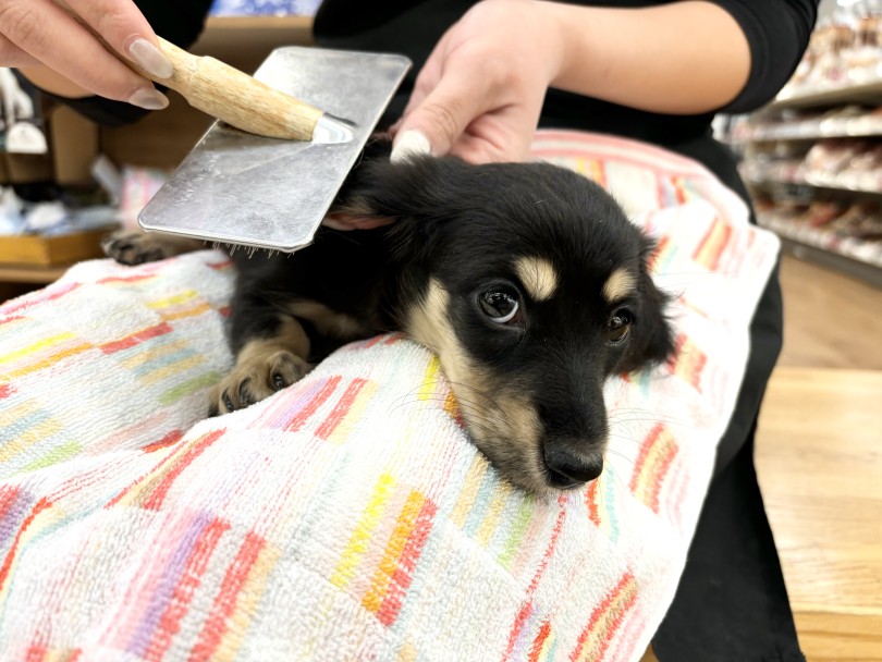 ペッツワン城山店にミニチュアダックスフントの女の子がやってきました!城山店ではダックスは爆発的に人気があり、すぐにご家族様が決まります。