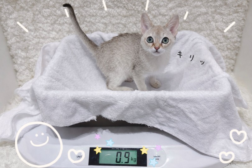 シンガプーラは家猫の中でも1番小さい種類と言われる程小柄な猫ちゃん。鶴ヶ島っ子のプーラちゃんも3ヶ月で何と900 gとコンパクト!