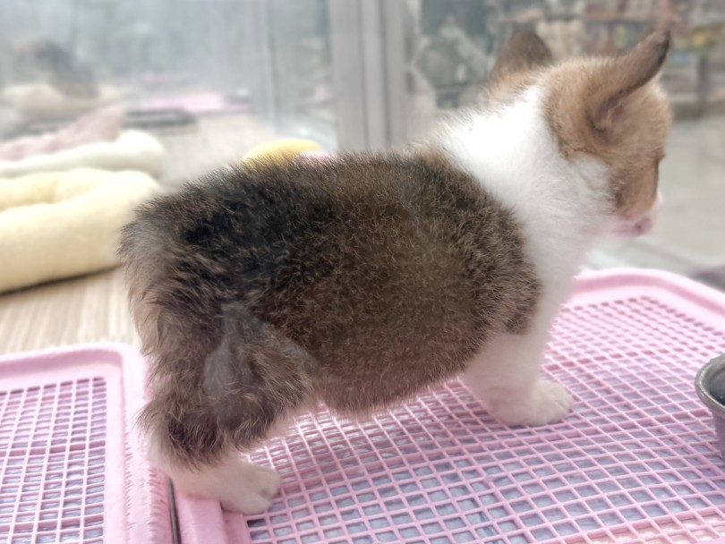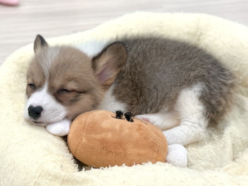 横から見ると、コーギーらしい胴長短足シルエットがしっかり出ています。足は短いのに骨太で、触れるとまだ柔らかいながらも芯のある感触がでています。