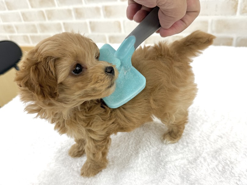 カットスタイルも幅広く楽しめます。テディベアカットで丸くまとめれば今の「子グマ感」をそのまま成犬まで延長できますし、マズルを少し短めに整えるとマルチーズ寄りの上品な顔立ちも引き出せます。