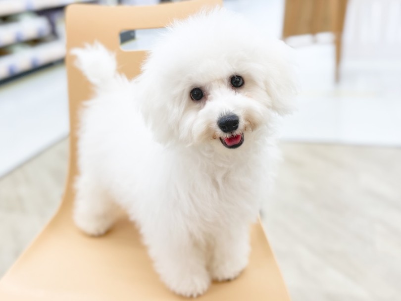 成長とともにふわふわ、もこもこに育ってきたビションちゃんの被毛。もちろんこのままでも十分可愛いビションちゃんですが…今回は年越しを前に少しスッキリめのカットをすることに♪