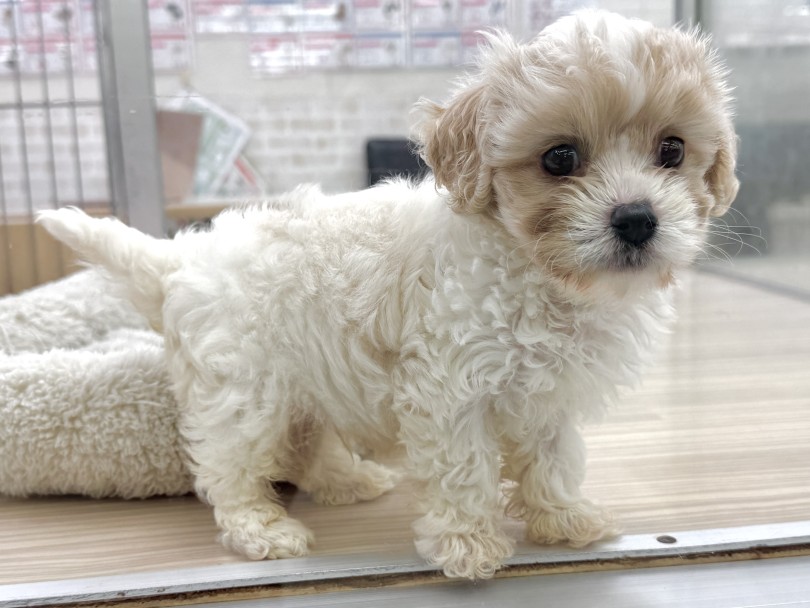 こんにちは!今回「横浜鶴見店」から紹介するのは、MIX(キャバリア☓ビションフリーゼ)の男の子♪通称「キャバションちゃん」はマルワングループでも代表犬種と言えるでしょう。