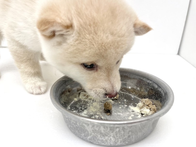 お迎えから1歳のお誕生日を迎えるまでは、現在お店で食べているごはんと同じ物をあげる事をお勧めします。