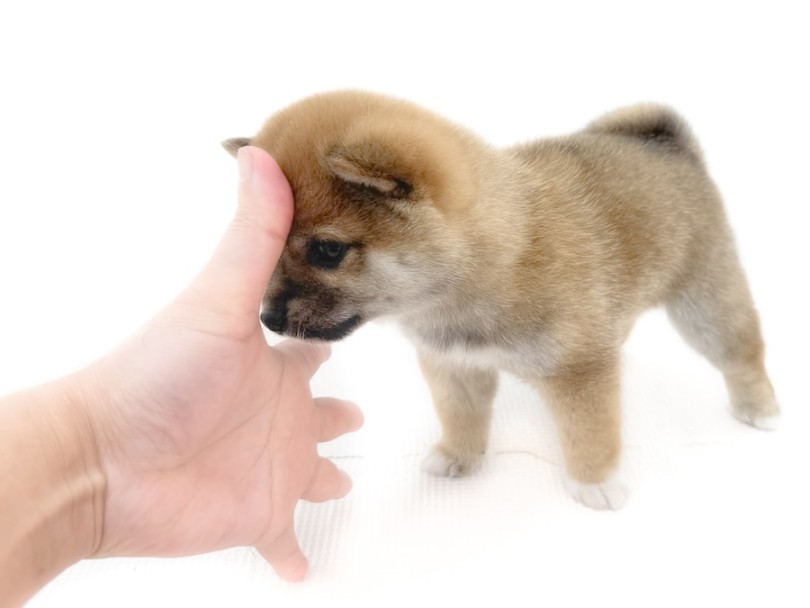 手のひらと比べてこのサイズ!かなり小柄なサイズであることが一目で分かります♪成犬時もかなり小さく、通常の柴犬と比較すると約半分程度のサイズになるのではないでしょうか?