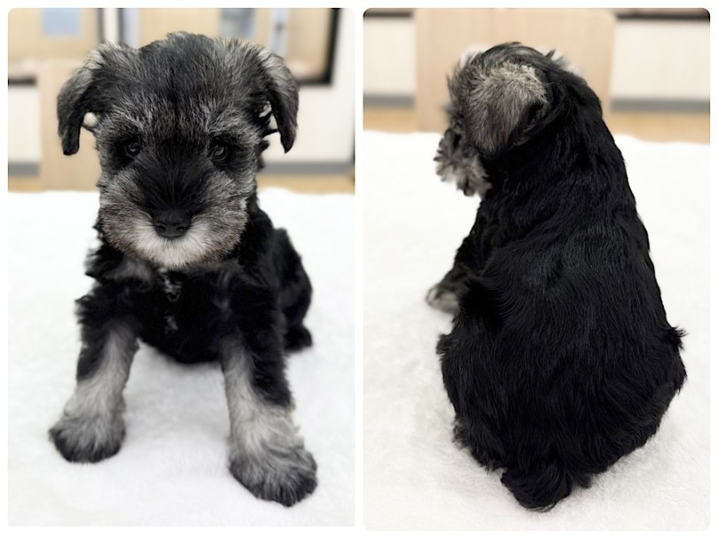 子犬の頃はブラック多めですが、成長過程でシルバーがかった毛色へ変化していきます。