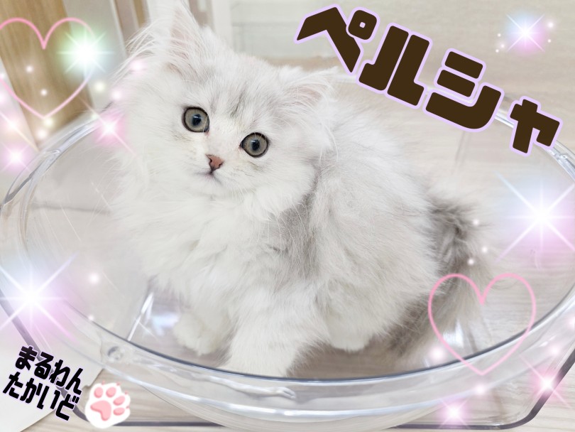 毛色はペルシャの毛色の中でも特に人気があるチンチラシルバー。内側から光を含んだような美しいグラデーションが特徴です。