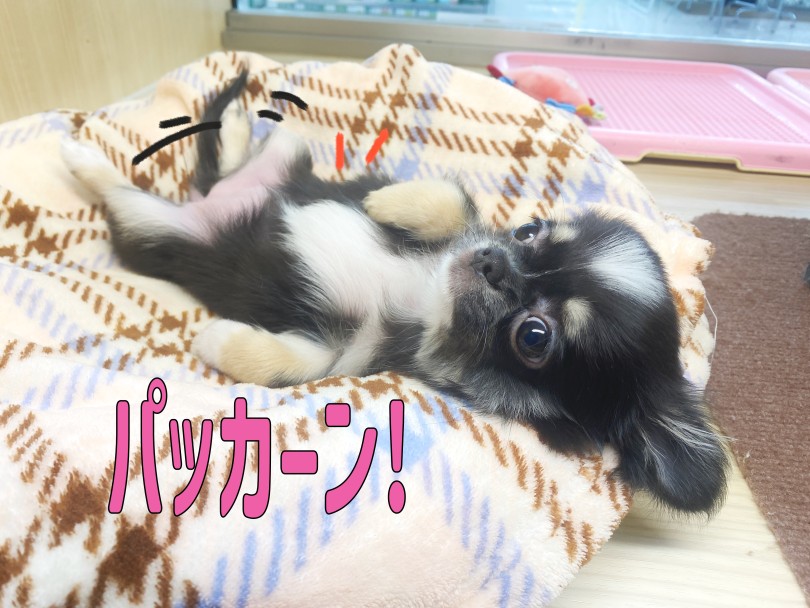 チワワちゃんお部屋に遊びに行くとお腹をゴロン♪