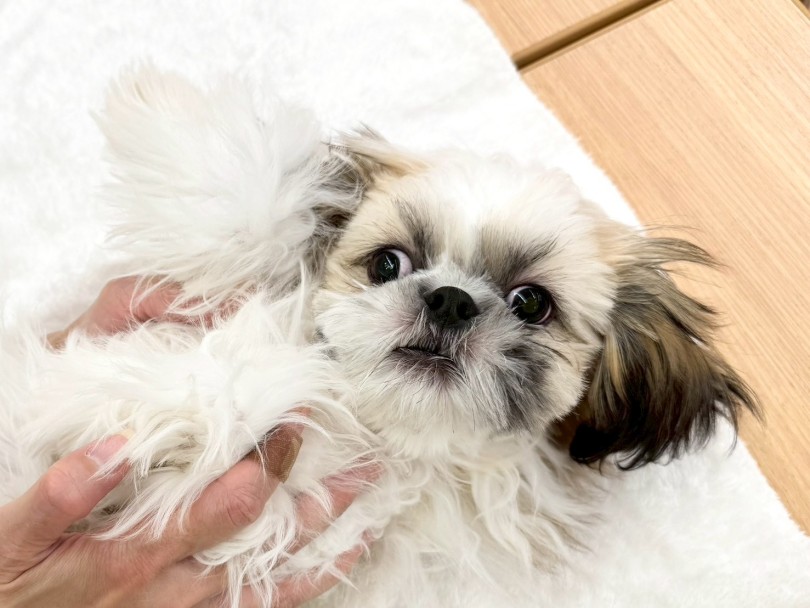 もふもふしたルックスと、抱き上げた時のくったり感がまるでリアルなヌイグルミのようなシーズー君。