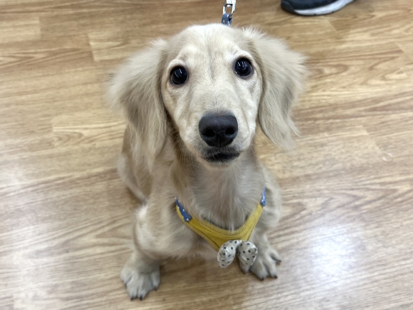 ダックスくんは生後5ヶ月を迎え、「お手入れ」「お散歩」など様々なトレーニングを日々一生懸命に行っています♪