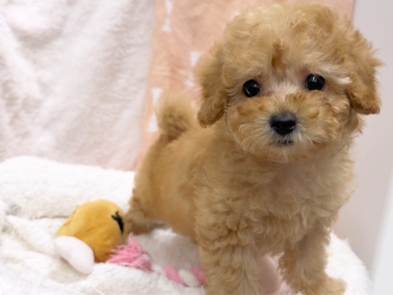 毛色は人気の高いアプリコットカラー!杏の実を連想させる優しく温かな毛色が特徴で、子犬期からの毛色の変化を楽しめる点も魅力です。