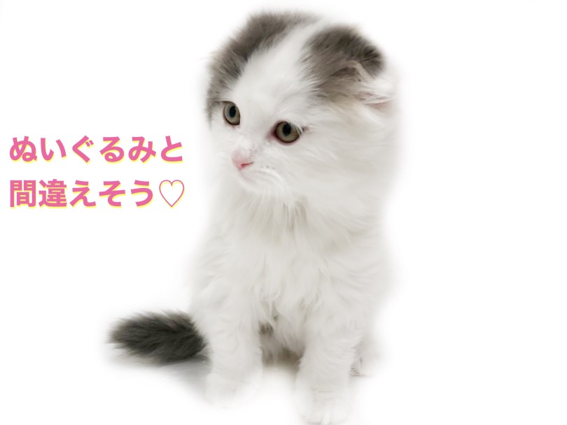 今回ご紹介させて頂くのは、垂れたお耳とふんわり優しい表情が印象的なブルー&ホワイトバンカラーの『スコティッシュフォールド』の男の子です。