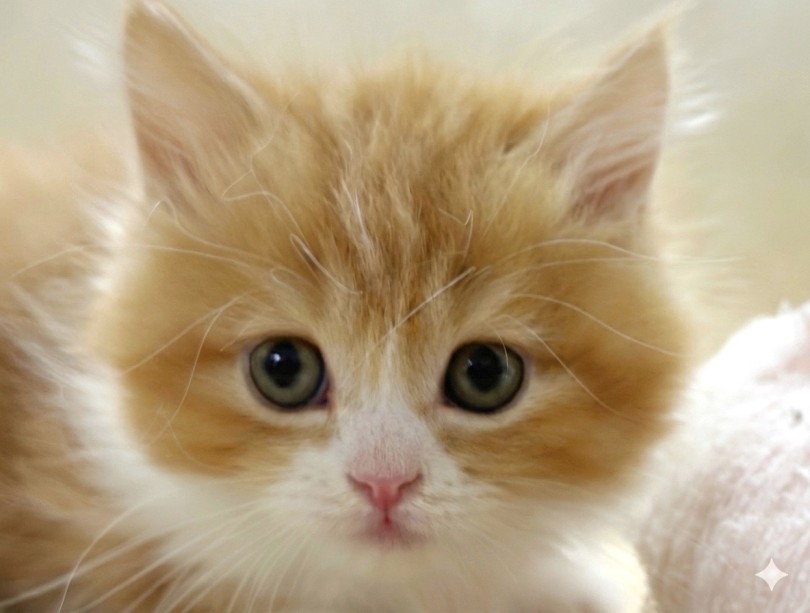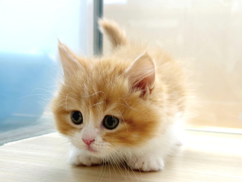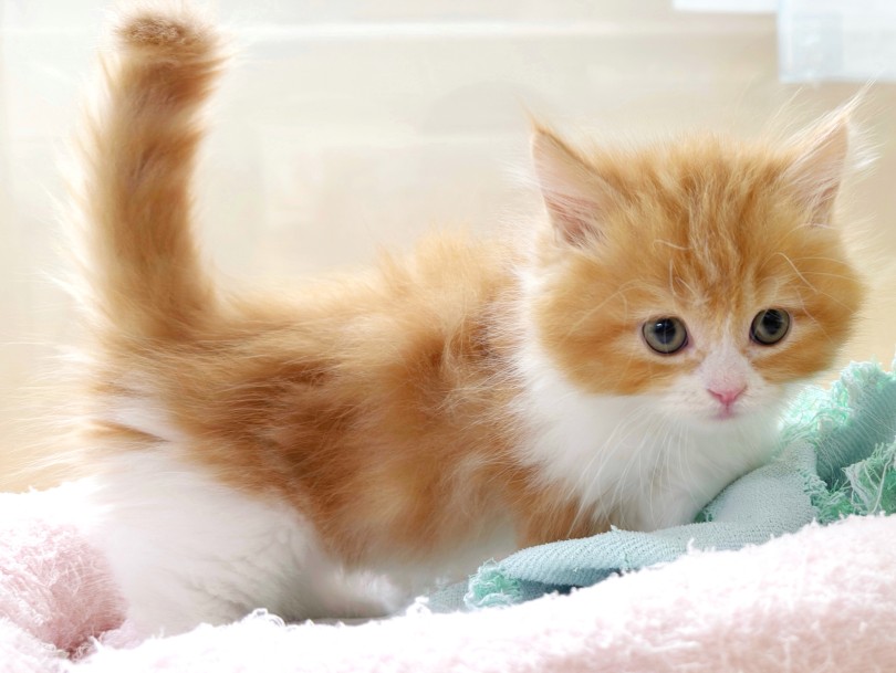レッドタビー&ホワイトの美しい毛色に、親しみやすい愛くるしい顔♡
