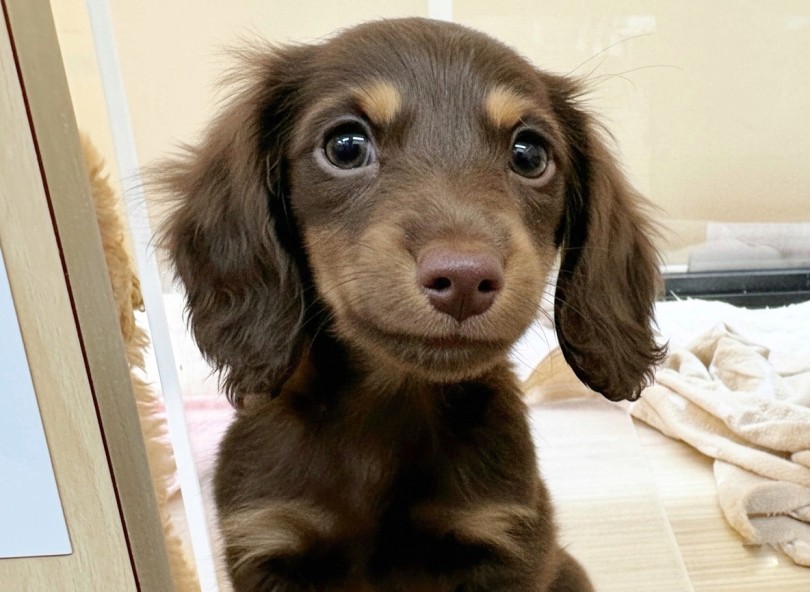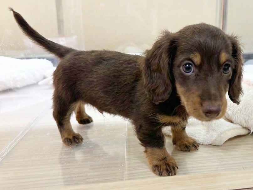 【 ミニチュア・ダックスフント 】短い手足が愛らしいチョコレート&タンの女の子