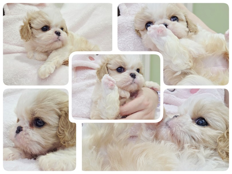 ビション譲りのホワイトがキャバリア譲りのブレンハイムを程よくクリーミーに!ベースのホワイトカラーに入ったカフェオレカラーが