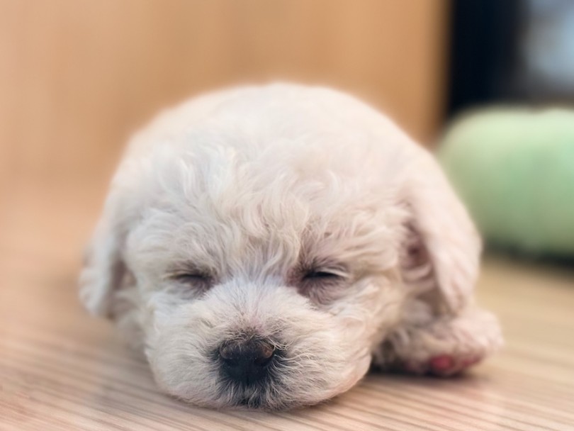 パウダーパフのアフロ犬で有名な純白の被毛が愛らしいビションフリーゼの女の子をご紹介します♪