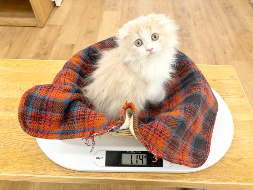 現在の体重は1.14kgでした!2025年12月17日の1stブログの時は560gだったので580g大きくなりました!