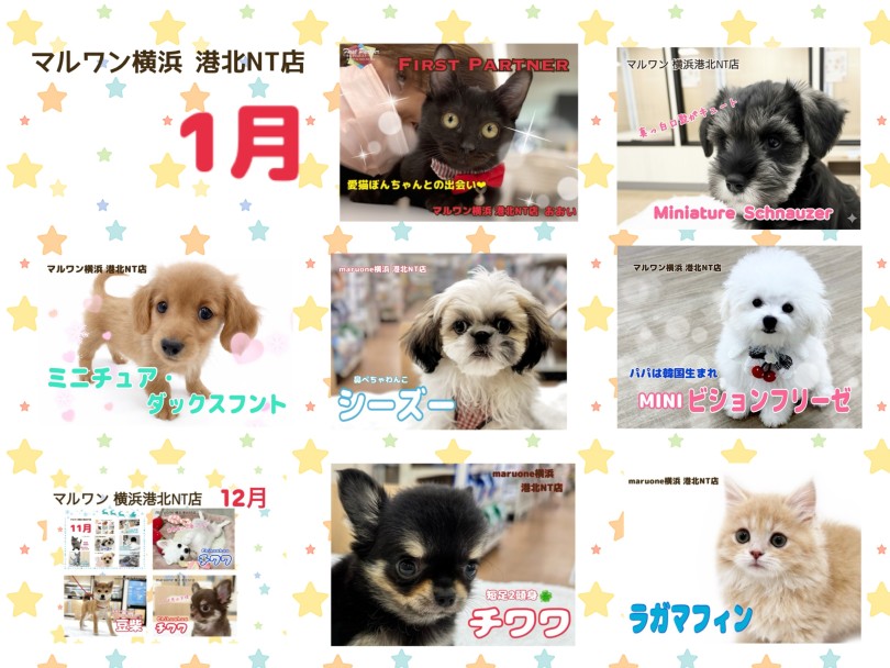 1月も、港北NT店の可愛いワンニャンの今が盛りだくさんとなっております。