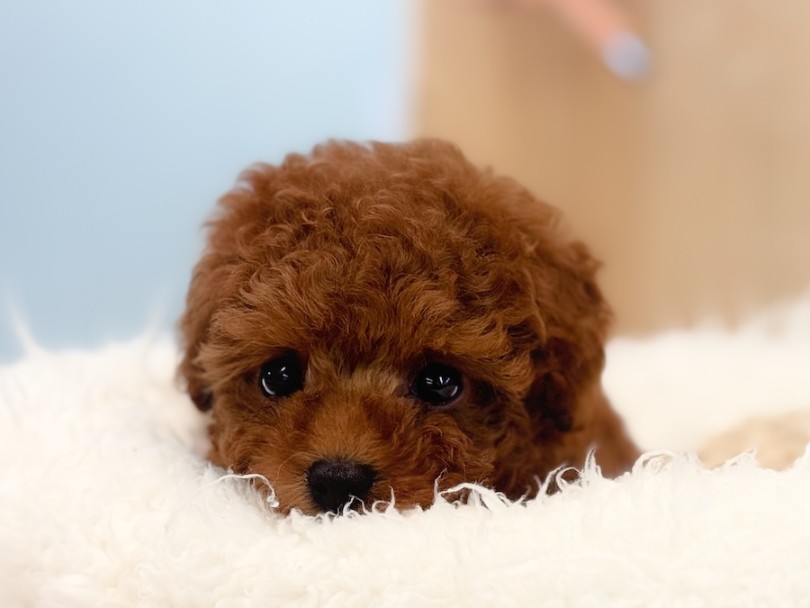 ▲止まらない尻尾が愛らしすぎませんか♡プレミアムの称号を持つ濃厚レッドカラーの小さめトイプードルちゃま。