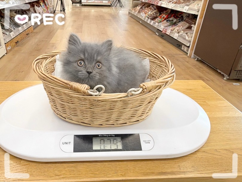 生後2ヶ月で体重は790gでした。小さな体でふわっとした毛に包まれているので軽そうに見えますが、抱っこしてみると意外とむっちり!