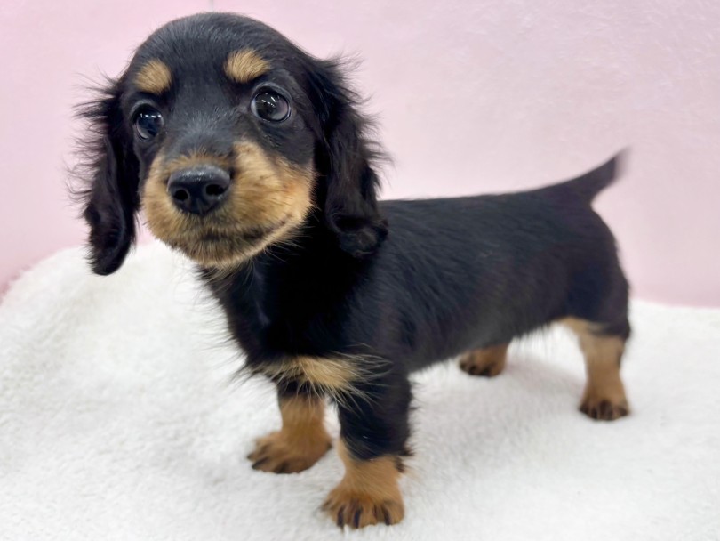 被毛は、艶のあるブラックに発色の良いタンカラーが映える王道カラー。
