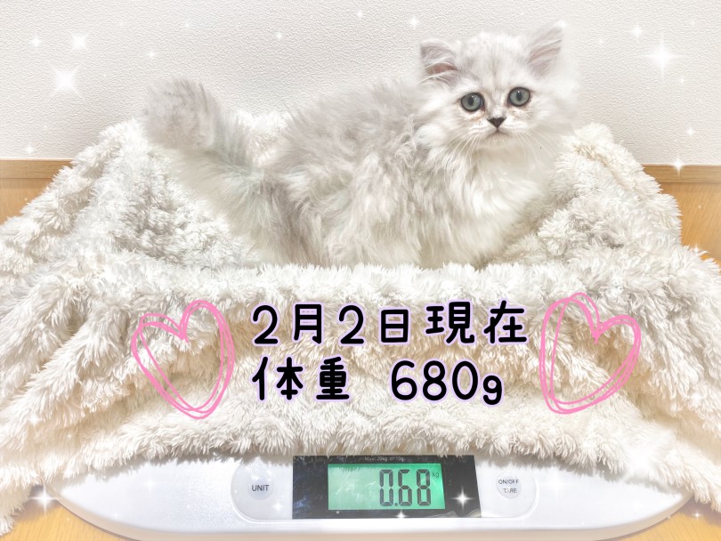 現在生後2カ月半で体重は680gのペルちゃんは両手にすっぽりと収まるくらい小さくて可愛い!!まさにふわふわのぬいぐるみさん♡