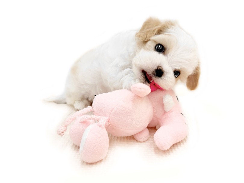 派手すぎず、でもしっかりと印象に残るこの絶妙なカラーリングは、キャバリアらしい華やかさとマルチーズの清潔感が同時に楽しめる魅力的なポイント♪