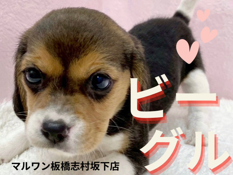 ビー玉のようにまん丸な瞳に、左右のバランスが取れているお顔付きの志村坂下店のビーグルちゃん♪