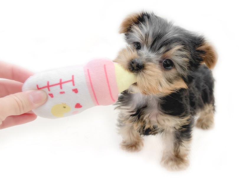 入店初日からお部屋では、よく食べ、よく遊び、よく寝る!100点満点のヨーキーちゃん。