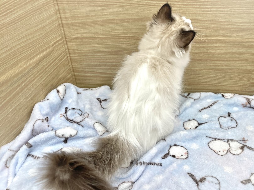 ラグドールならではの神秘的で青く透き通ったブルーの瞳は、お店に来たときから変わらず鮮やかでまるで宝石のような輝きを放っています♡