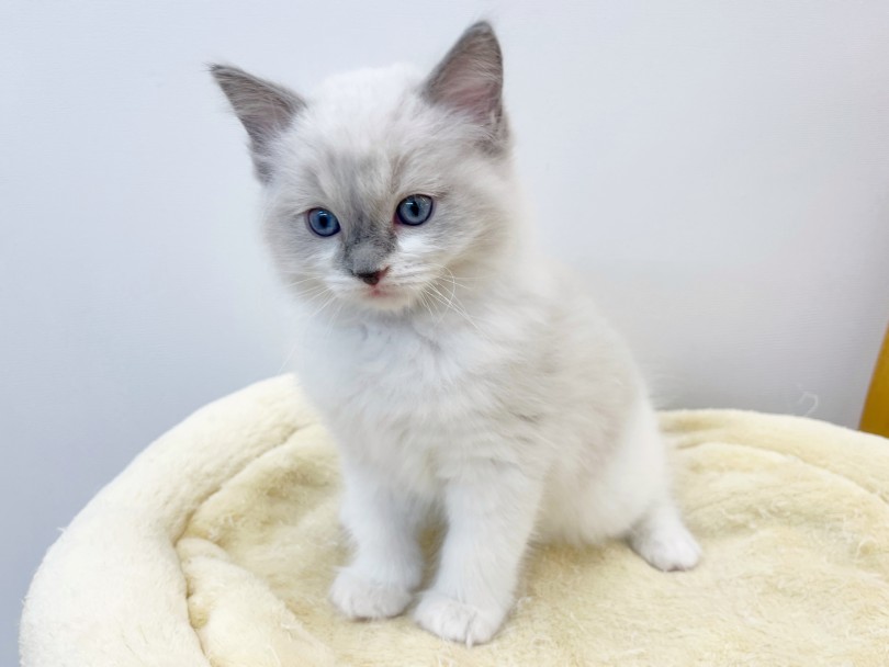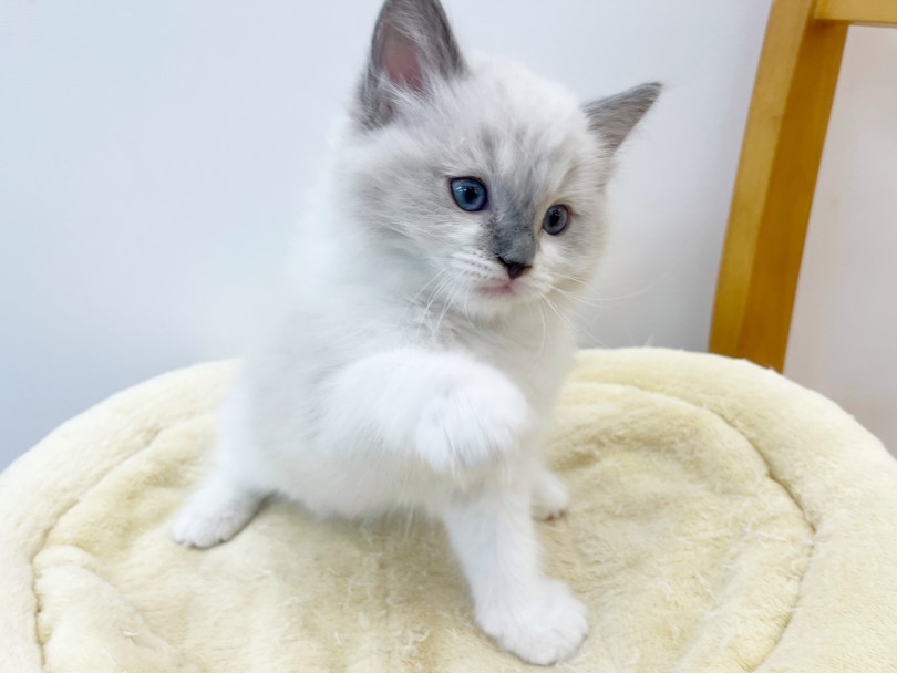 お耳や尻尾に入る優しいグレー(ブルー)のポイントカラーと、透き通るような青い瞳のコントラストは、まさに「生きた宝石」です♪