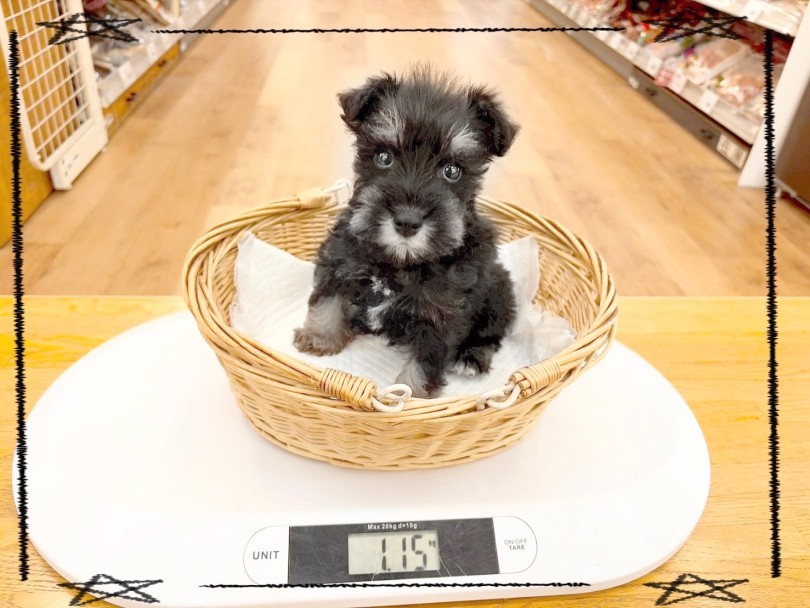 2月14日現在のシュナちゃんの体重は1.15kgでした。約500mlのペットボトル2本分です(笑)