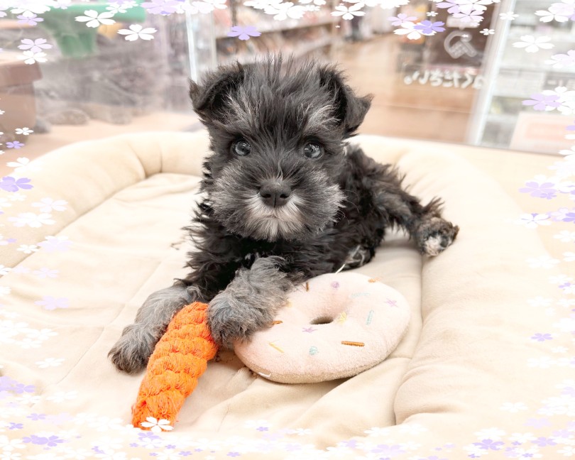 左右対称にシルバーカラーが入っており、シュナウザーの特徴でもある、キリッとした眉毛におじいちゃんのようなお髭。