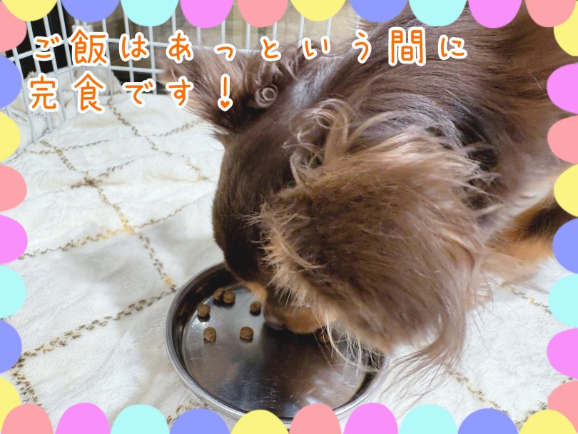 チワックスちゃんは現在1日2回、35gのドライフードをしっかり完食。ふやかしの手間が無く、完食癖が付いているからご飯の置きっぱなしも防げるいい子ちゃん!