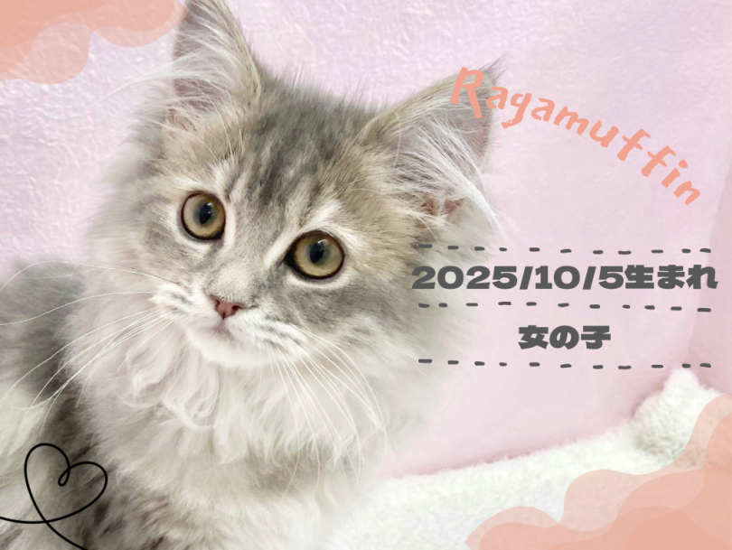 ラガマフィンらしい丸みのあるフェイスラインに、しゅっと通った鼻筋、ほんのり上がった口角が加わり、「守ってあげたくなる可愛さ」が見事に引き立っています♡