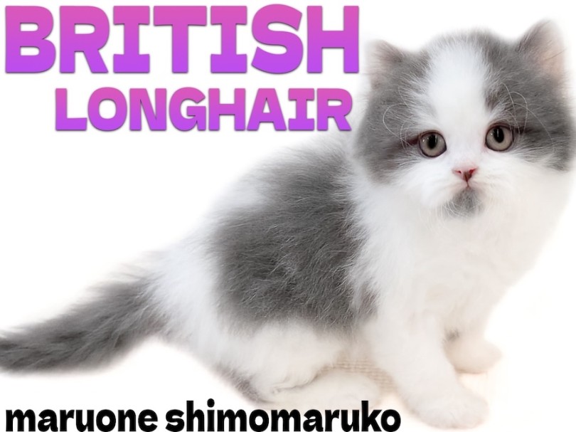 ブルー&ホワイトの美しいコントラストの被毛とまぁるいブリティッシュらしい顔立ちが魅力的な、ブリティッシュロングヘアの男の子♪白をベースに頭から背中へふんわりと広がるブルーの配色は上品さを感じられます。