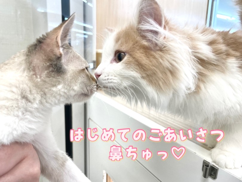 猫同士のあいさつの仕方は、鼻と鼻をくっつけます。