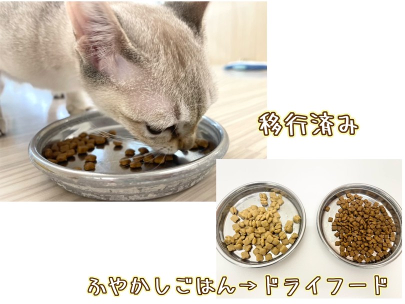お兄さんになったのでふやかしごはんを卒業、ドライフードへ移行しました。