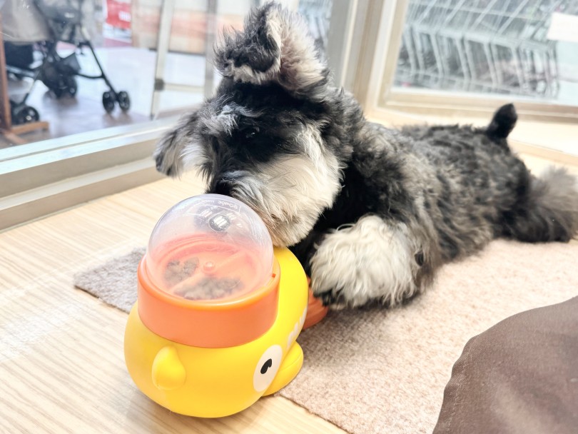 オモチャの中にオヤツを入れて遊ぶことは、知育玩具としてのメリットが高いと言われています♪