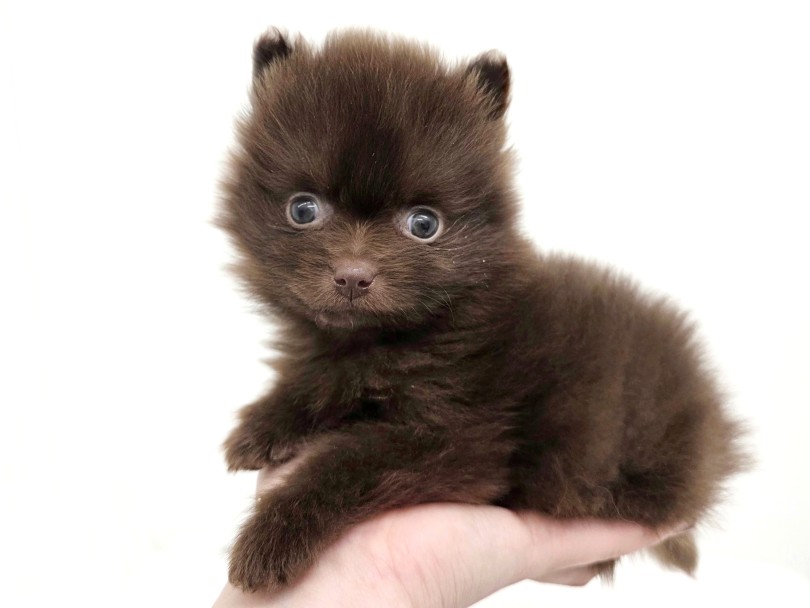 激レアカラー『チョコレート』のポメラニアンが、杉並区のペットショップ、マルワン高井戸店にやって来ました。